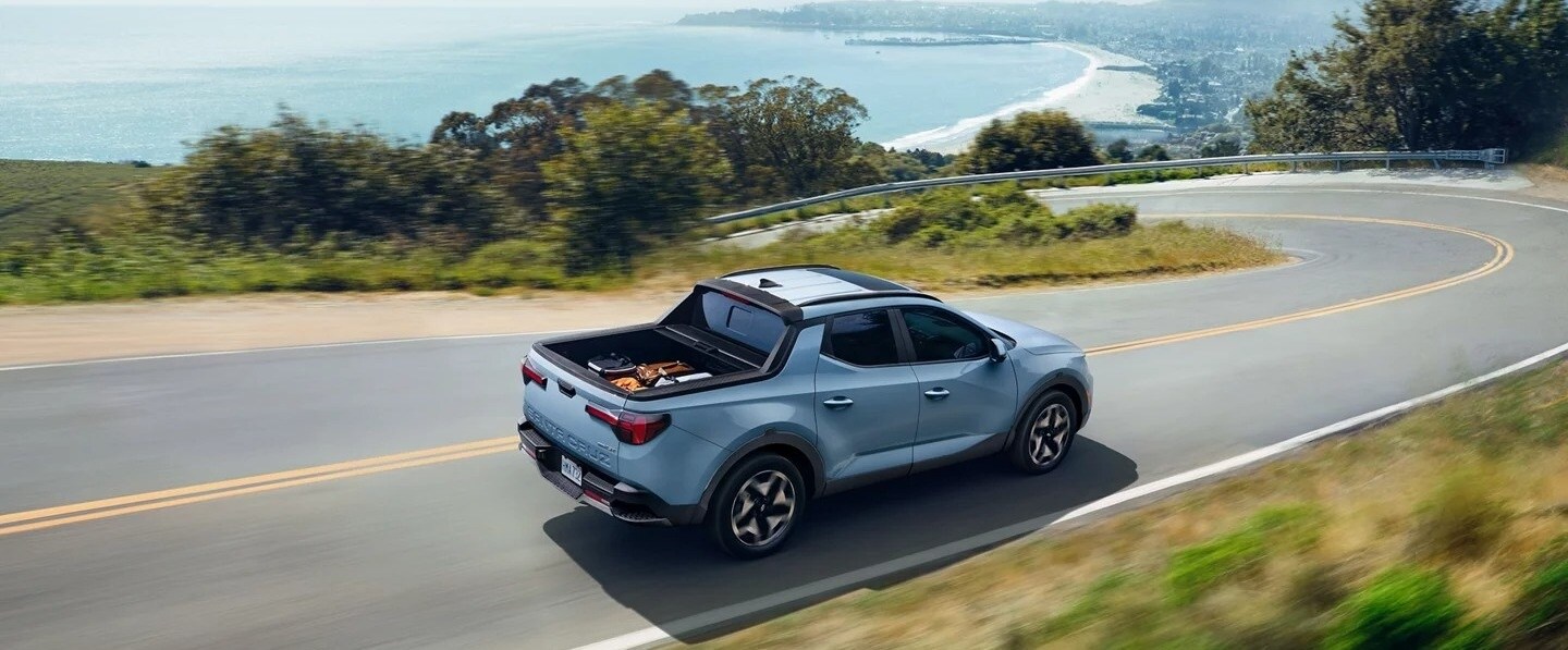 Do you like to be bold and make a statement everywhere you go? That's the power of the unique exterior design of the SANTA CRUZ. Be prepared for some interested stares at your vehicle when you pull into Kachelmacher Park. The truck's style aside, owners can place all sorts of products in the 27 cubic ft. of bed volume3. The sheet-molded composite truck bed resists damage from the materials you're hauling, so you can load up with confidence. With this model, you'll also get standard heavy-duty cargo D-rings to help you tie down your load. The 2024 Hyundai SANTA CRUZ has the toughness and utility you'd expect from a pickup truck.
