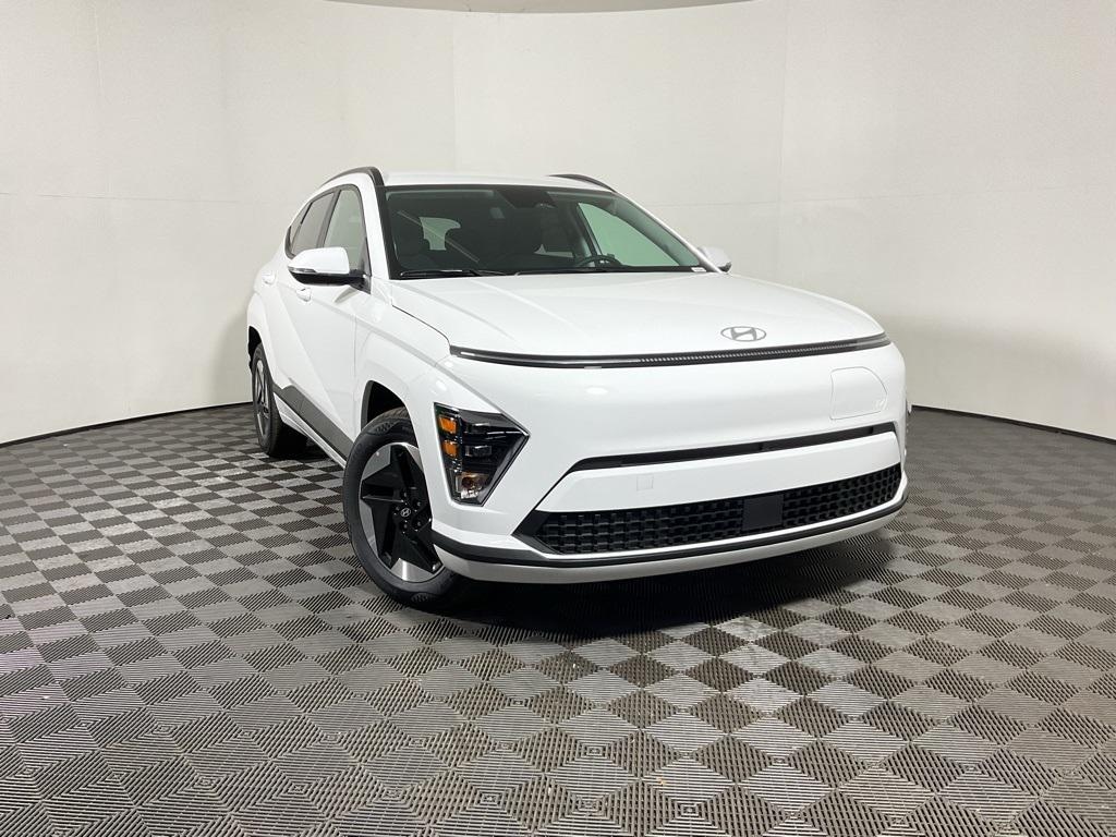 Kona Electric SEL, Electric Motor, Atlas White, Apple CarPlay & Android Auto, Automatic temperature control, Fully automatic headlights, Heated Front Bucket Seats, Navigation System, Power driver seat, Radio: AM/FM/SiriusXM/HD Radio Audio System, Rear window defroster, Remote Keyless Entry, Speed control, Steering wheel mounted audio controls, Wheels: 17" x 7.0J Aero Alloy.