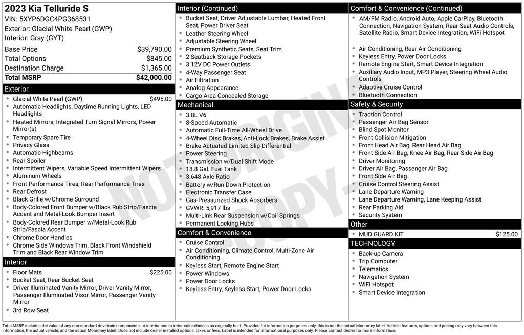 A short drive from Athens, Cambridge, Chillicothe, Circleville, Columbus, Lancaster, Logan, Marietta, Nelsonville, Newark, Pickerington, Pomeroy, and Zanesville in Ohio, as well as Charleston, Clarksburg, Huntington, Morgantown, Parkersburg, Vienna, and Wheeling in West Virginia. 2065 East State St. Athens, OH 45701. Near Ohio University! Down the road from Hocking Hills! Vehicle: 2023 Kia Telluride S Price: 27719 (live market adjusted) CarFax: True, available today Stock#: F368531P | VIN Ending: 5XYP6DGC4PG368531 Delivery: Nationwide delivery available.