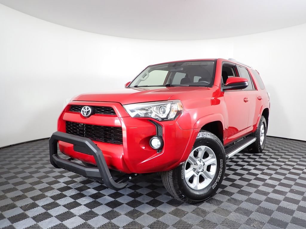 This Toyota 4Runner SR5 has many features and is well equipped including, 4-Wheel Drive, 17" x 7.0" 6-Spoke Alloy Wheels, 3.727 Axle Ratio, 8 Speakers, Air Conditioning, Brake assist, Electronic Stability Control, Front Bucket Seats, Front Center Armrest, Heated door mirrors, Leather Shift Knob, Leather steering wheel, Overhead console, Power door mirrors, Power driver seat, Radio: Entune Audio Plus, Remote Keyless Entry, Split folding rear seat, Steering wheel mounted audio controls.